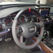 A5핸들 커버도 아우디의 감성을 최대한 끌어올릴 수 있는 것은 알칸 탈라는 아니에요?이탈리아 원단인 알 캔턴다는 부드러운 촉감의 진짜 매력, 그리고 비싼 포르셰, 람보, 페라리의 같은 차의 내장제로 쓰이고 있습니다~가끔 핸들도 알칸 아바타라 옷감이 들어간 모델도 볼 수 있습니다. 그만큼 알칸 탈라 핸들 커버의 그립감과 촉감은 어느 정도 보장되고 있다는 의미죠. (웃음)아우디 a5스포츠 백은 알칸 탈라+타공 가죽으로 멋진 핸들을 만들었습니다. 추가로 강렬한 느낌을 주는 붉은 실과 일렬 포인트!핸들 커버를 걸어 확 바뀐 아우디 a5스포츠 백을 찾았습니다.차에 타는 순간부터 시선 집중!직접 핸들을 돌아보니 사람들이 왜 알칸 탈라 핸들 커버를 원하는지 알아요. #바느질 핸들 커버 시공점#핸들 커버 부착만#diy핸들 부착